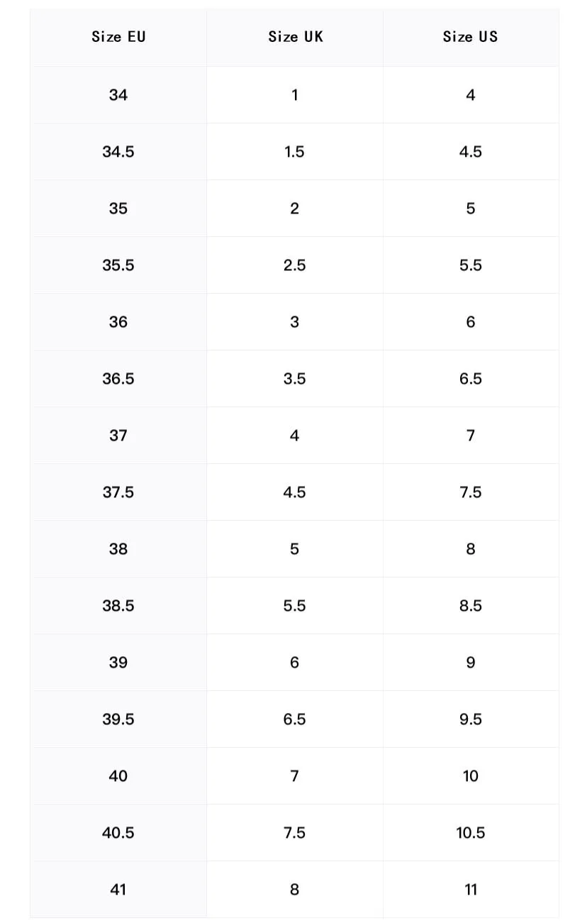 | Size | 34, 35, 36, 37, 38, 39, 40, 41, 42 |